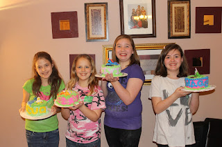 In addition to Battle of the Books, Maggie also had a cake decorating party this weekend.  She has been struggling at school with friendships so we decided to invite some girls over for a party so she could "bond" with some of her classmates from both church and school.  They each got a cake and a hunk of fondant to decorate with.  They had so much fun and I was amazed at their creativity.